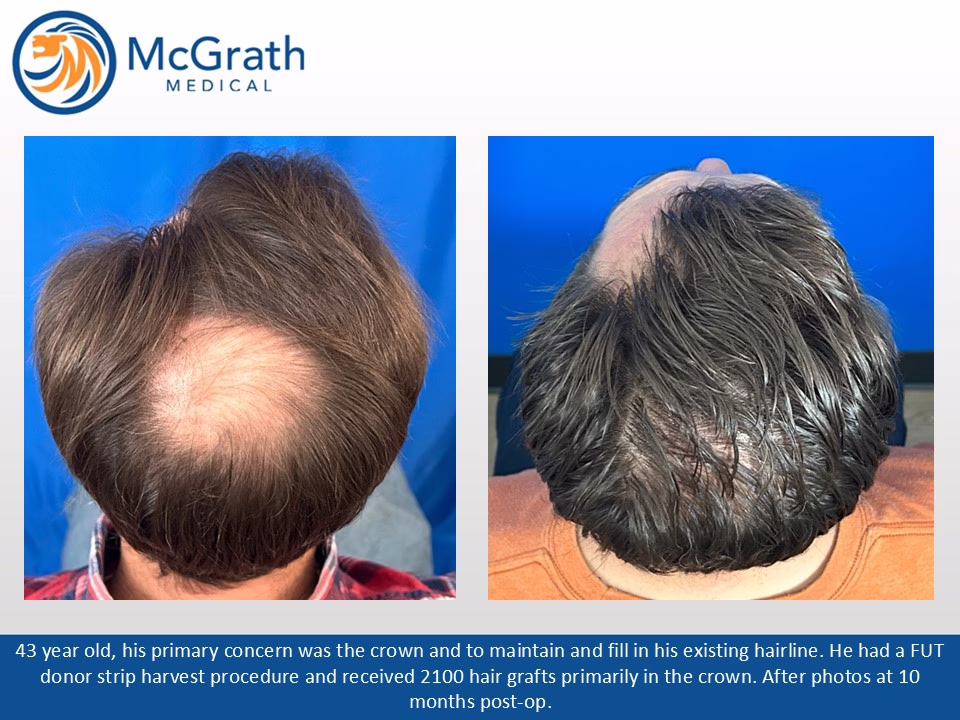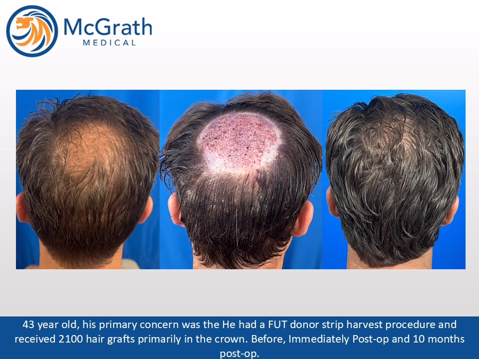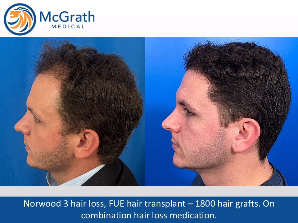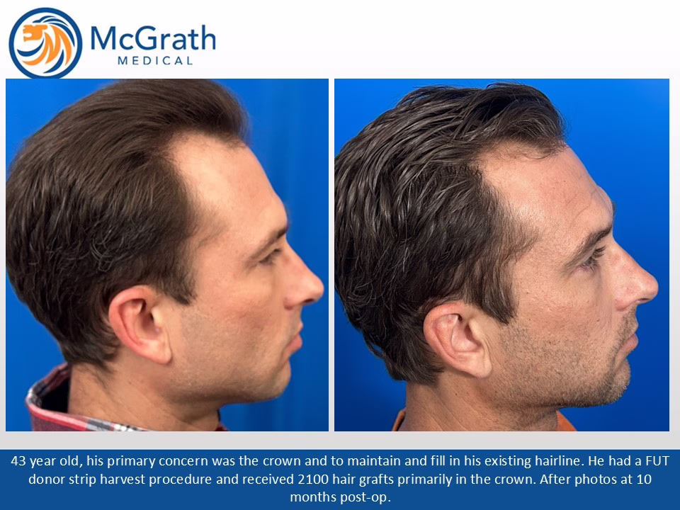 Before & After Before & After Male Pattern Baldness - One Procedure Hair Transplant (Click on images to enlarge) Before, Immediately Post-op and 10 months Post-op. Side view immediately Post-op and 10 months Post-op.
