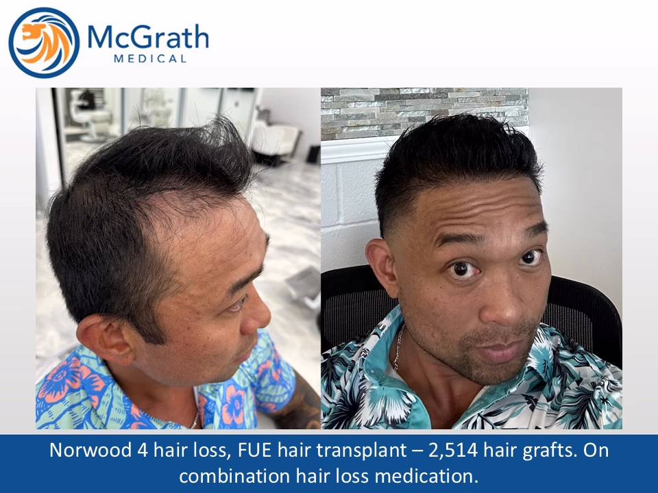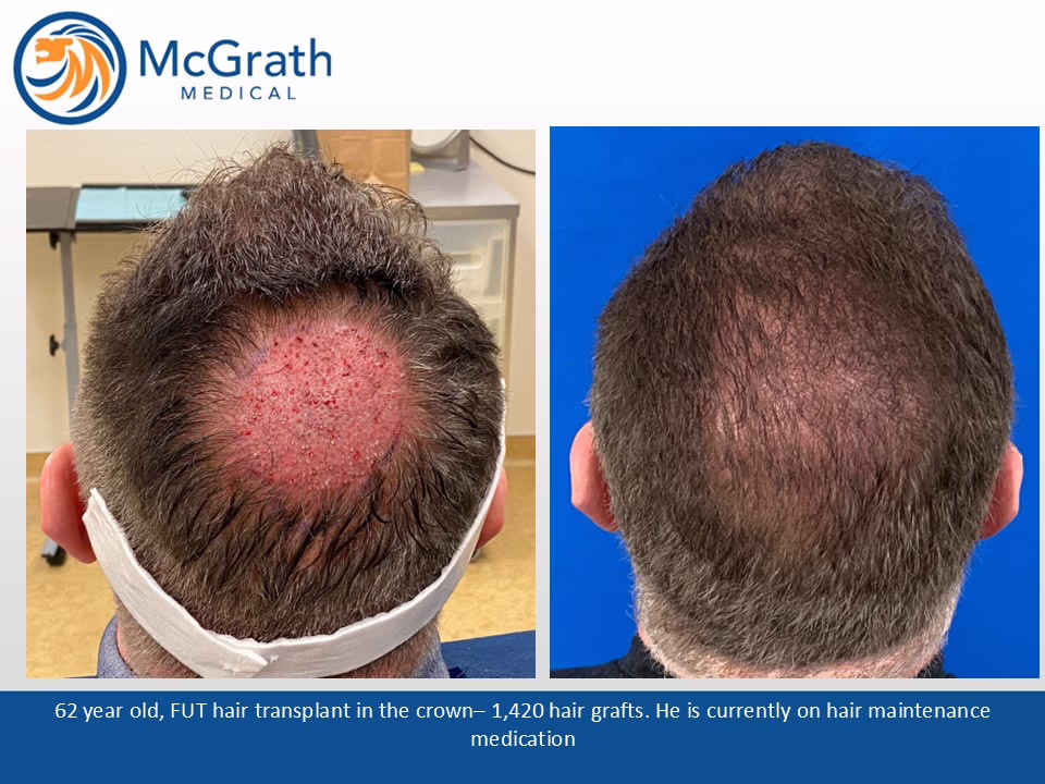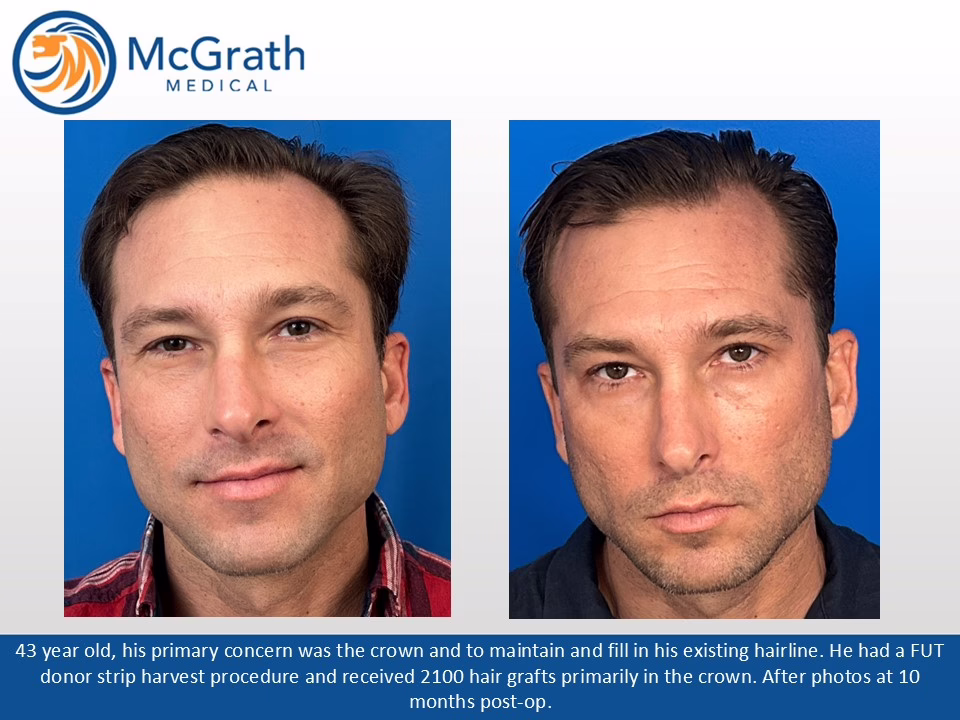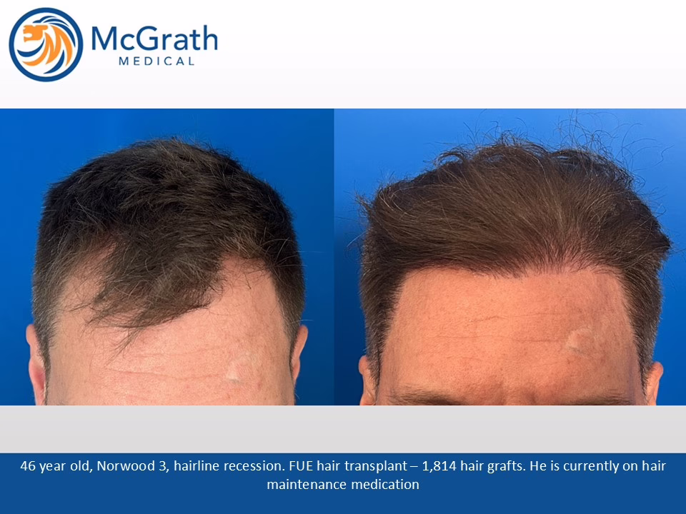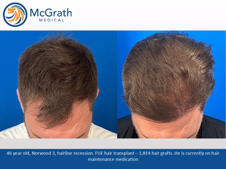 Before & After Before & After Male Pattern Baldness - One Procedure Hair Transplant (Click on images to enlarge) Before, Immediately Post-op and 10 months Post-op. Side view immediately Post-op and 10 months Post-op.